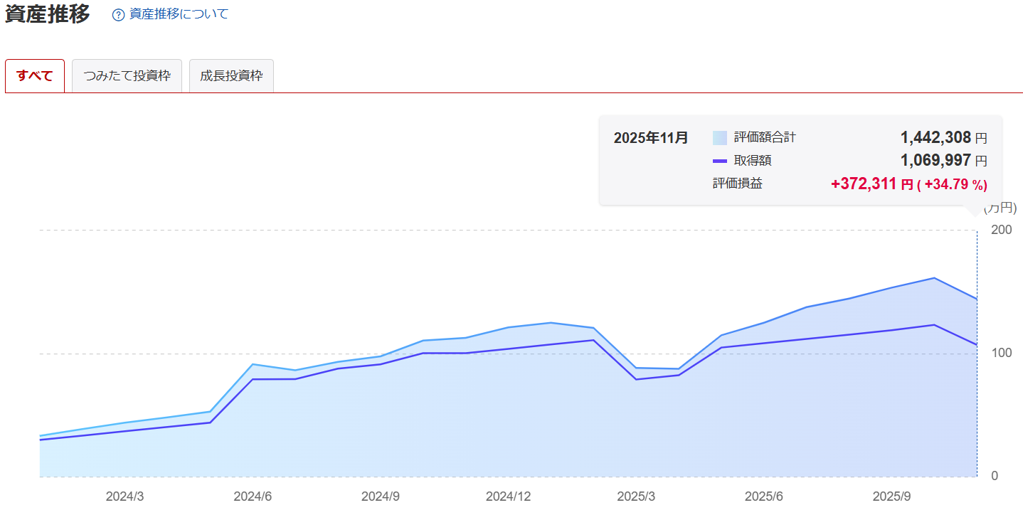 今週のNISAは、プラス22,284円と先週のマイナスを払拭までは行けませんでしたが、含み益を増やしてくれました。