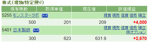 大した投資額ではありませんが、以前から気になっていた日本製鉄の株とここ最近動きが活発になってきていたモンスターラボ。