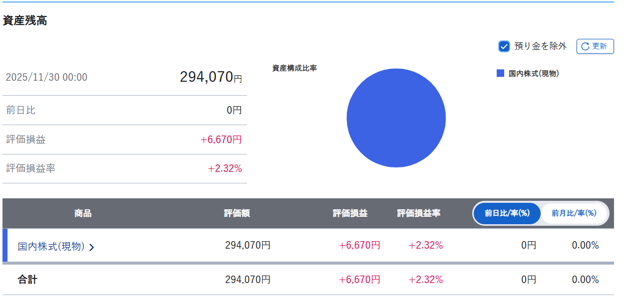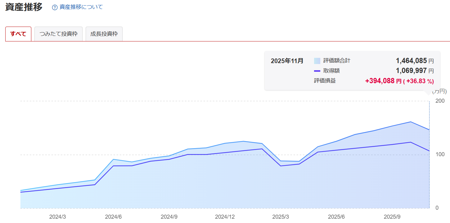 ただ来週からは12月に入るので、年末に掛けて荒れる可能性もありますが、そこはNISAですから長い目で見ましょう。
