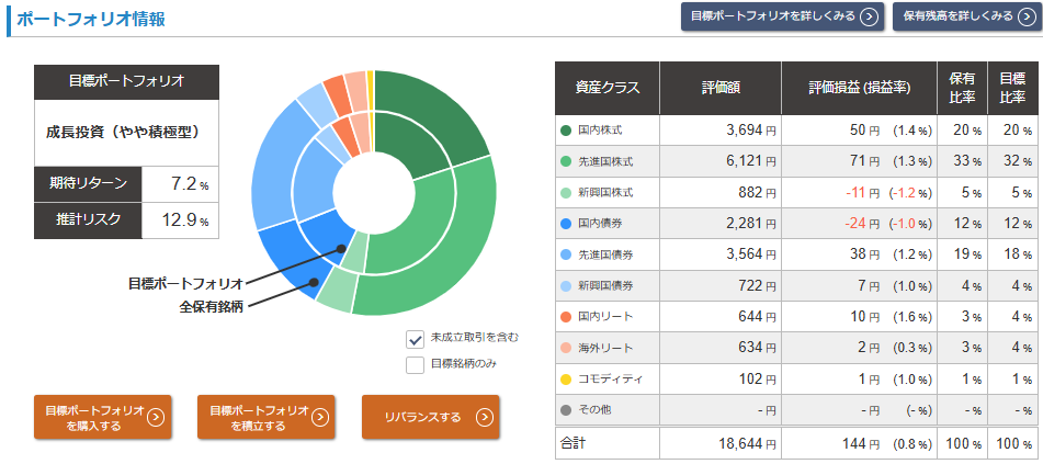 私のポートフォリオは株式の割合が50%を超えているので、株式が下がれば全体的に下落する可能性は高まりますね。