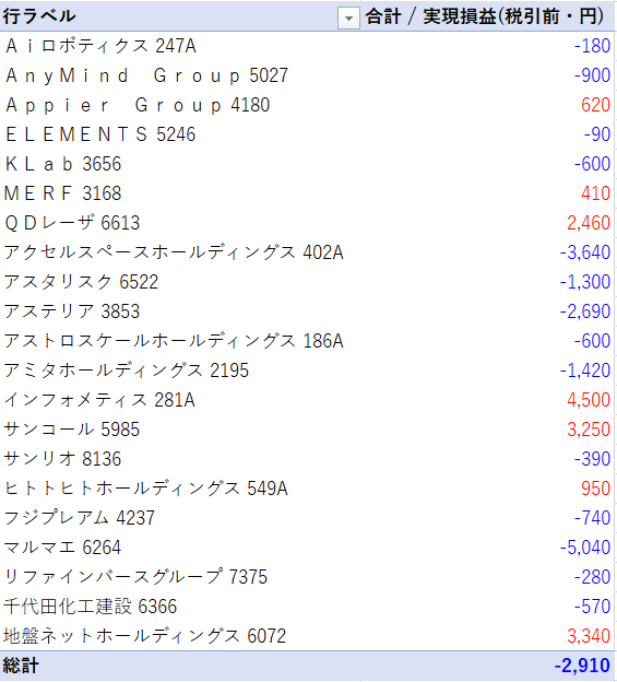 損益額:-2,910円